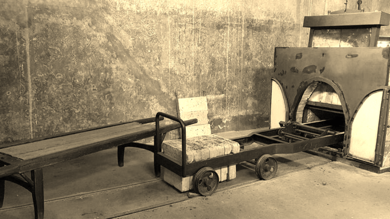 Die Diensthabenden schoben den Leichnam ohne Sarg bzw. ohne dessen Oberteil in den Verbrennungsofen. Er verbrannte nur mit dem Brett, auf dem er befestigt war. Der Rest des Sargs konnte aus Sparsamkeitsgründen mehrmals verwendet werden. Das an den Öfen diensthabende Personal bemühte sich, die sterblichen Reste jedes Eingeäscherten gesondert aus dem Ofen zu schüren, damit sie in einem individuellen Behältnis geborgen werden konnten. Dabei mussten sie die Asche nach Goldbruchstücken (Zahnkronen) durchsuchen, diese aussammeln und der SS-Kommandantur übergeben.