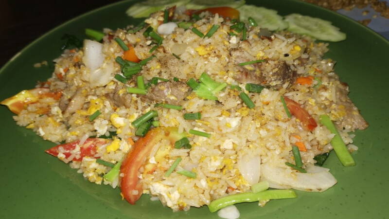 So haben Sie in der Regel die Wahl zwischen Kao Pad mit Gemüse, Schweinefleisch, Hühnchen oder Garnelen.